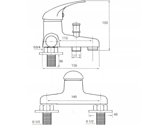 145 mm pasuje do wanny „starego typu”