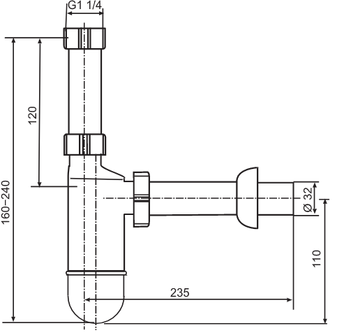 Półsyfon do umywalki butelkowy model 610/3 – G 1 1/4 x 32