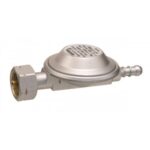 Reduktor do zastosowań domowych na standardowe butle gazowe 11 kg. z lewym gwintem, wyjście na zaciskany wąż gumowy 8-9mm średnicy.